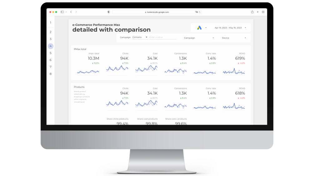 Looker Studio Dashboard für Google Ads Performance Max für e-Commerce Kampagnen